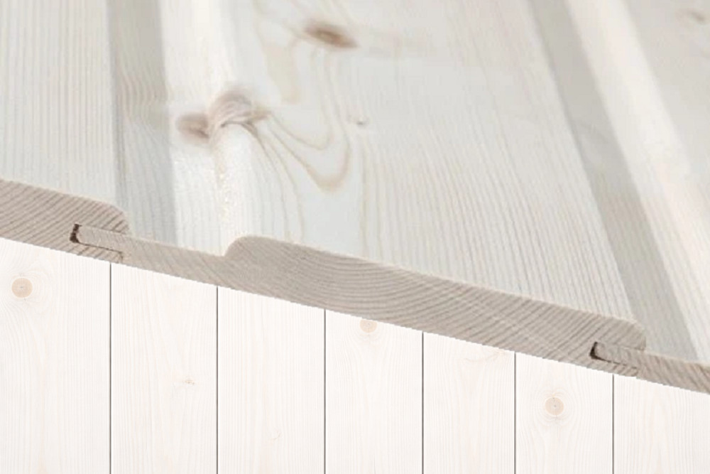 Rustikk rund er et klassisk panel som du ofte ser i litt eldre hus over hele landet. Profilen gir et svalt og behagelig inntrykk. Panelet er overflatebehandlet med Woodwash White – en spesialbehandling som gjør at treverket beholder sin lyse farge lenger enn ved bruk av standard lakk eller lasering. Du kan lese mer om Woodwash her