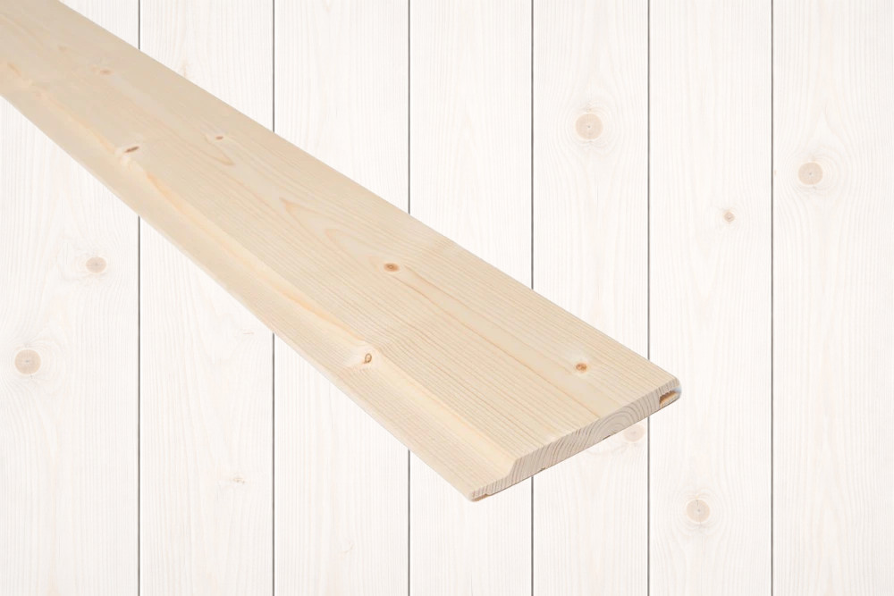 Innvendig panel type 14×120 Skygge Skrå Mix. Med sin tradisjonelle form og enkle skyggeeffekt har Skyggeskrå blitt Norges mestselgende innvendige panelprofil.